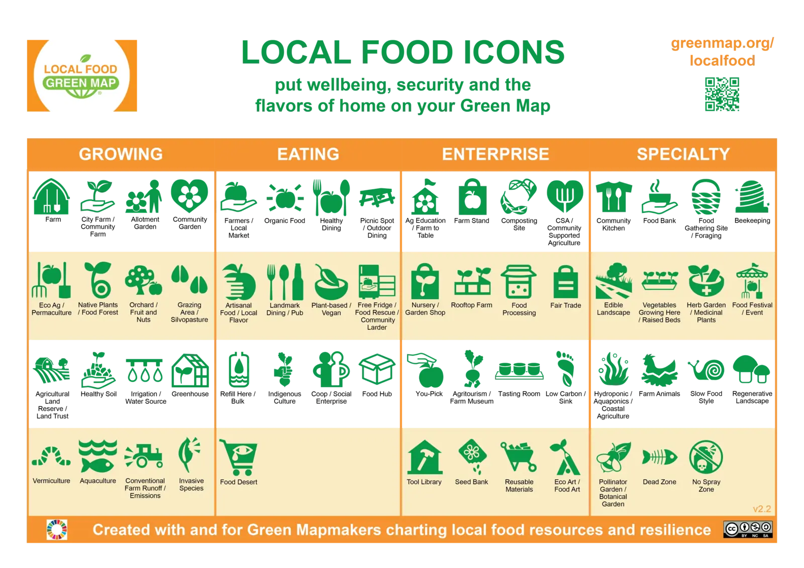 As Spring arrives, we are happy to share that our new set of Local Food Icons is complete and ready to use! Just in time for the growing season (in the northern hemisphere), there are 60 icons for local Growing, Eating, Enterprise and Specialty food sites.