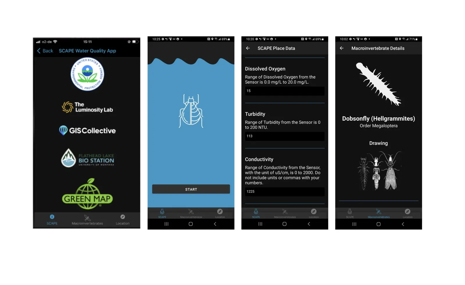 The SCAPE Water Quality App project is led by Professor Dan Collins and was developed with the help educators, scientists, designers, and programmers at the Herberger Institute for Design and the Arts at Arizona State University in Tempe, Arizona, the Luminosity Lab at ASU, the Telluride Institute in Telluride, Colorado, the GIS Collective in Berlin, Germany, and the Green Map System in New York.