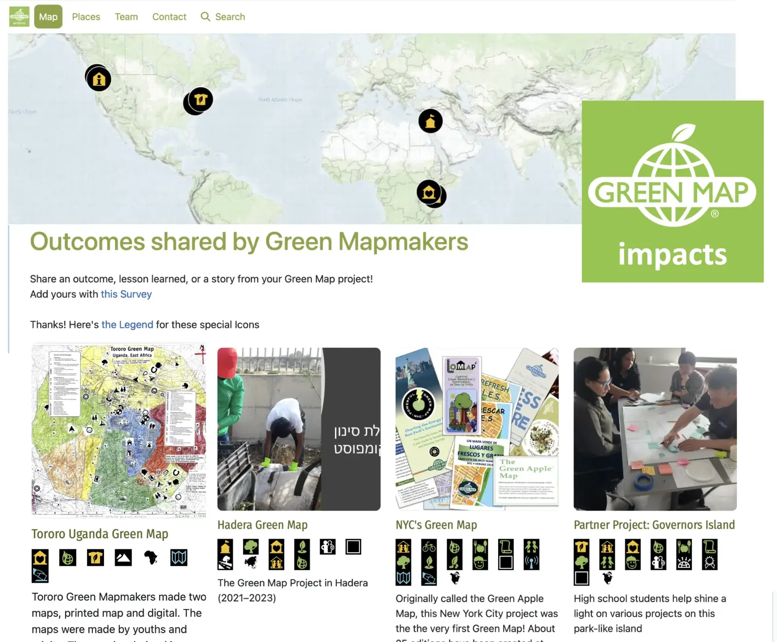 Last year, we started to envision a digital archive that would be made in collaboration with the Green Mapmakers that would chart the outcomes, maps and media of each Green Map project. We’ve since come to understand the complexity of that grand vision and decided to start by focusing on the most important element: the impacts, as shared by the Mapmakers.