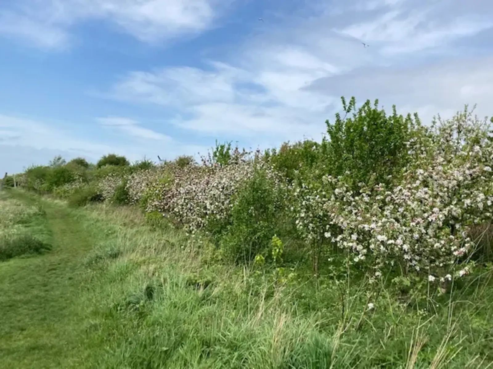 the steep slopes and parkland between the Fife Coastal Path (the old Thornton Jnc. to Methil railway line) and the Firth of Forth over which it commands fabulous views. Local charity CLEAR has planted extensive woodlands and orchards throughout this extensive area, as well as benches, arches, totems and interpretation boards. Some sections of the slope are prone to slippage and severe coastal erosion occurs at the shoreline