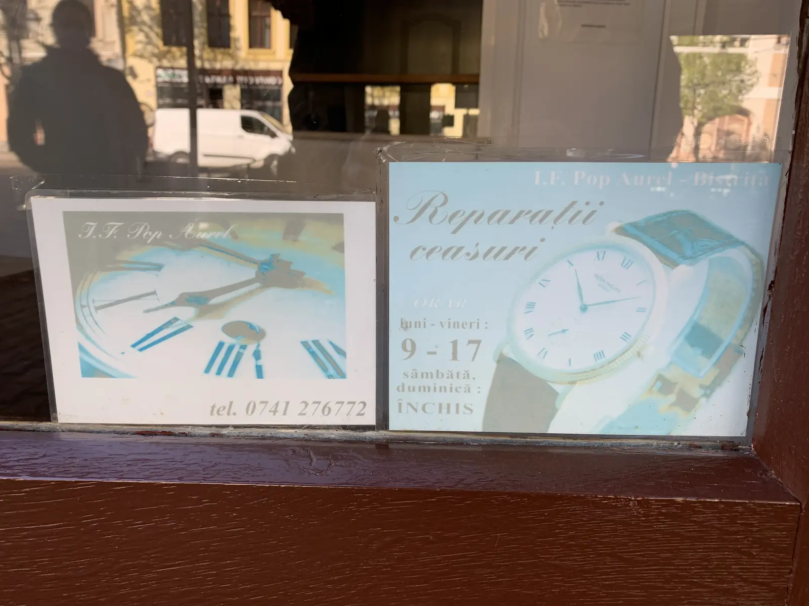 reparații ceasuri la întreprindere familială Pop Aurel, tel. 0741 276772 pe str. Liviu Rebreanu 20. orar de funcționare: luni - vineri: 9 -17
