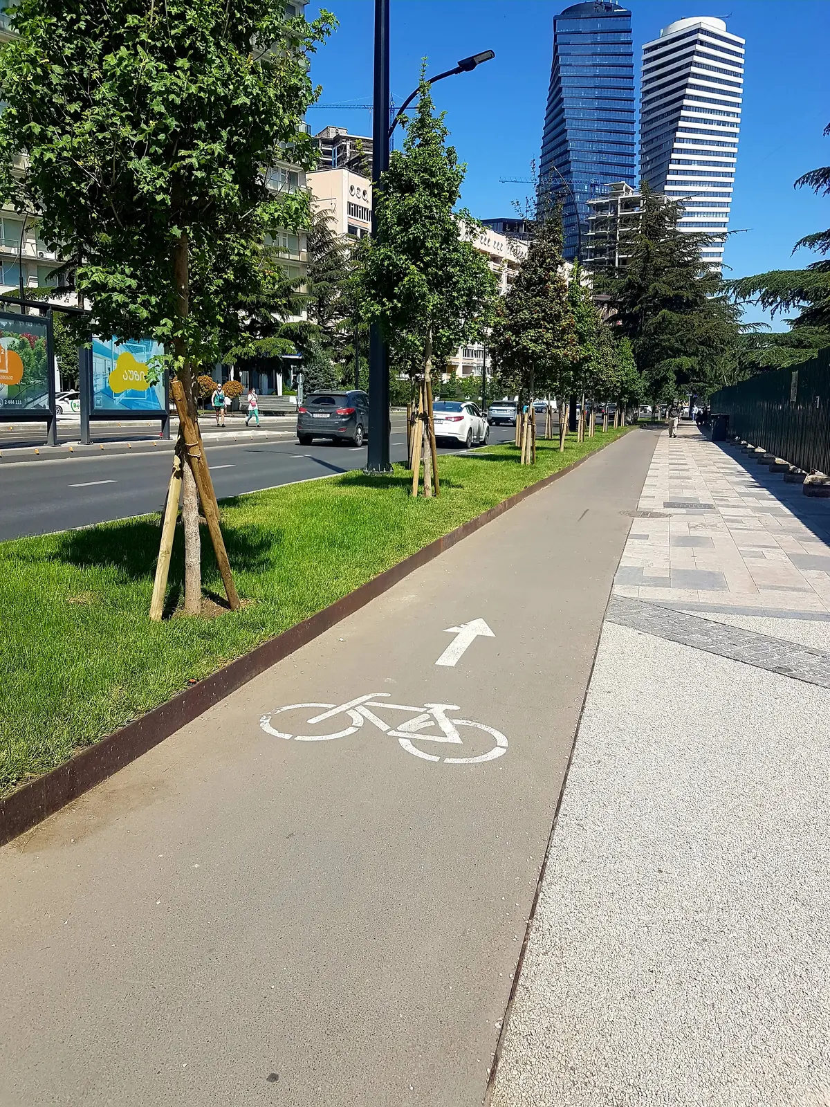 🚴🏽♀️ Up to 3 kilometres, a long bike path stretched on one of the main avenues of the capital city Tbilisi. With almost no elevation, you can easily access the key places on the street with your bike. The path is also accessible for electric scooters, skateboards and other sustainable transport means.