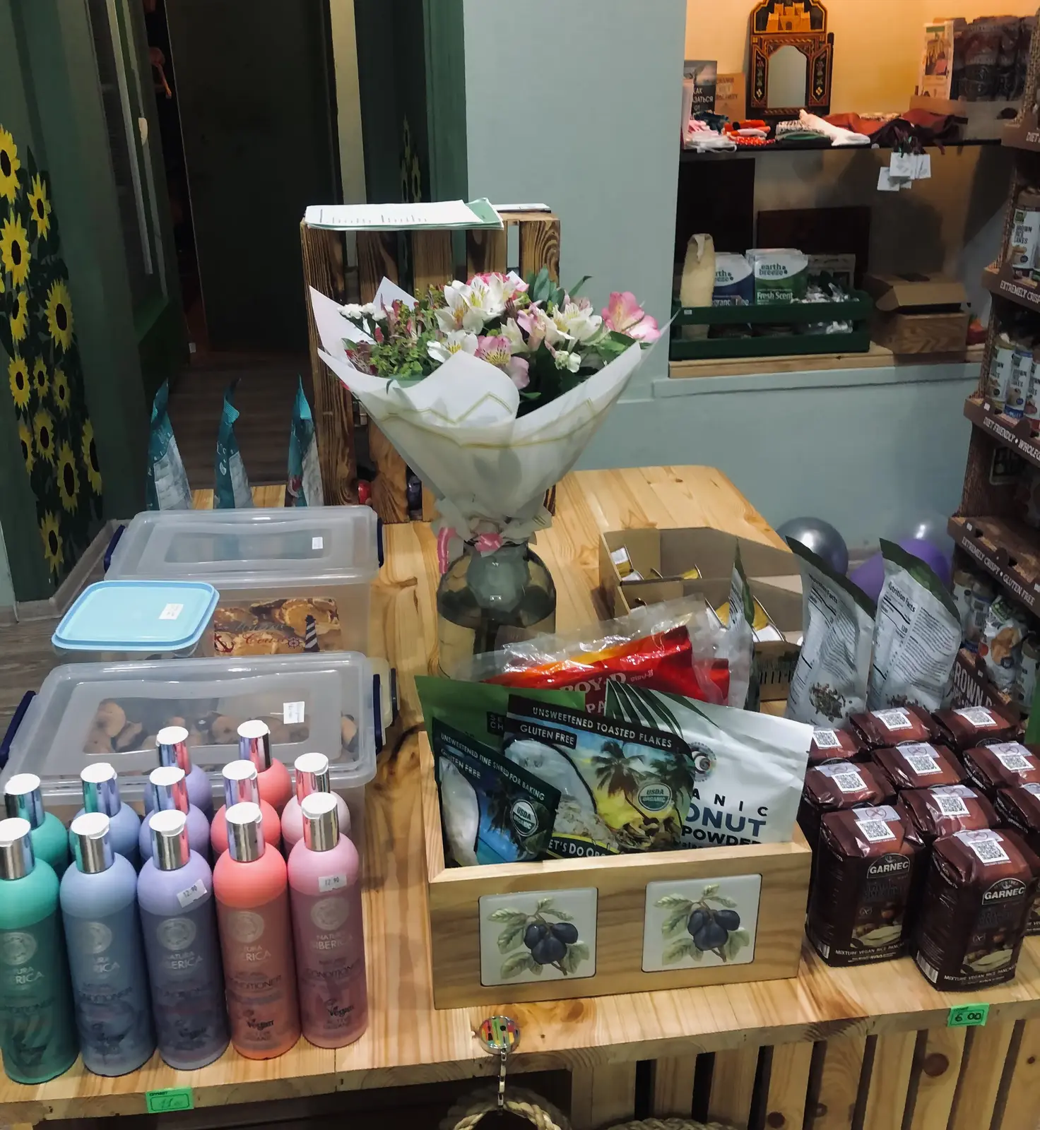 🌱 This store sells vegan products. Have you heard of super foods, but not about super plants? Not every plant is suitable for this. What nutritionists consider "super" is full of antioxidants, fiber, vitamins and minerals, as well as other foods that can help you live longer, look better, and even prevent disease. You can currently find many gluten-free products in the store. Not only can you shop at the store, but you can also sit down and have a nice ☕coffee. These coffees are organic (certified), ie grown in completely natural conditions, without the use of any chemical fertilizers or pesticides.
