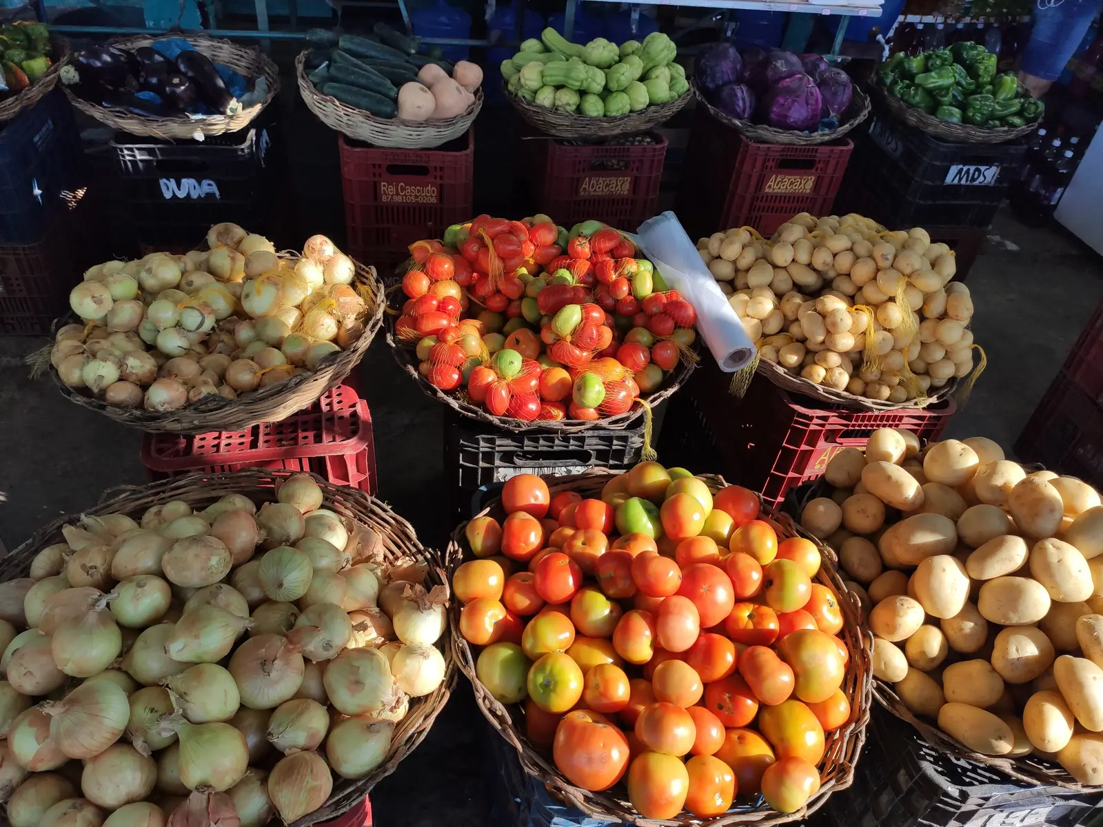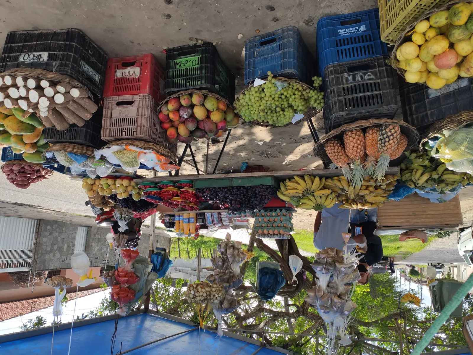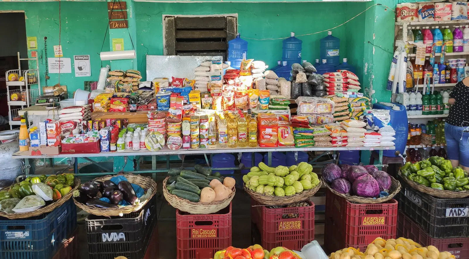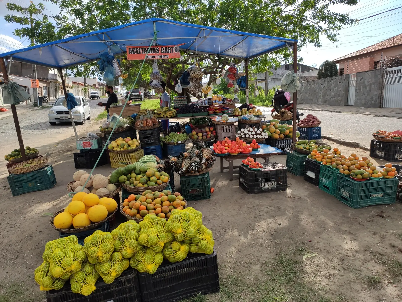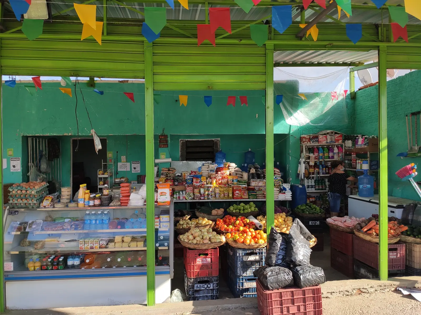 Local food trade, with a good variety of fruits and vegetables, as well as basic everyday products. The place is made up of two points, one being the establishment on a property (pictures 1-4) and the other a tent near the highway roundabout (pictures 5-6).