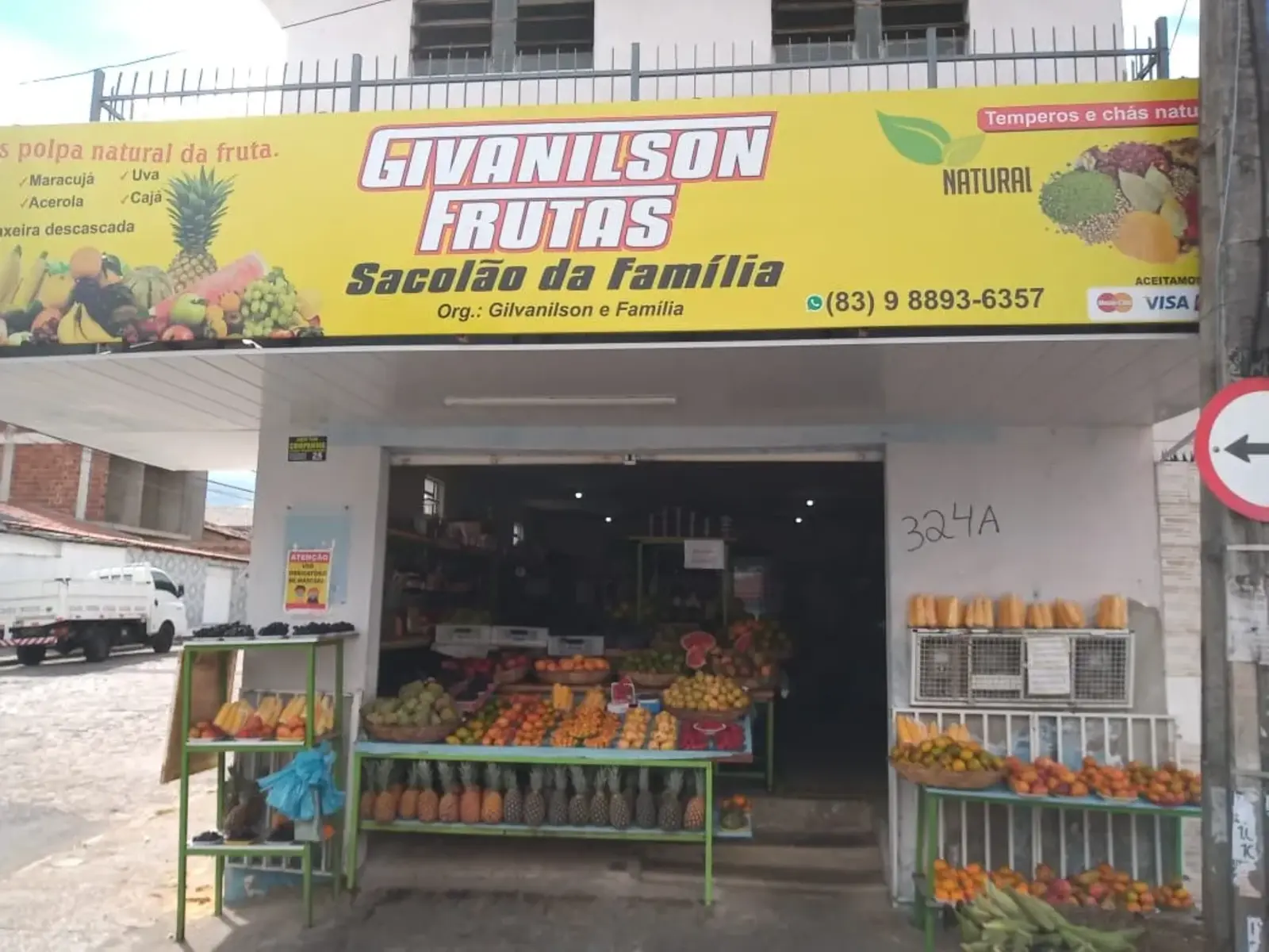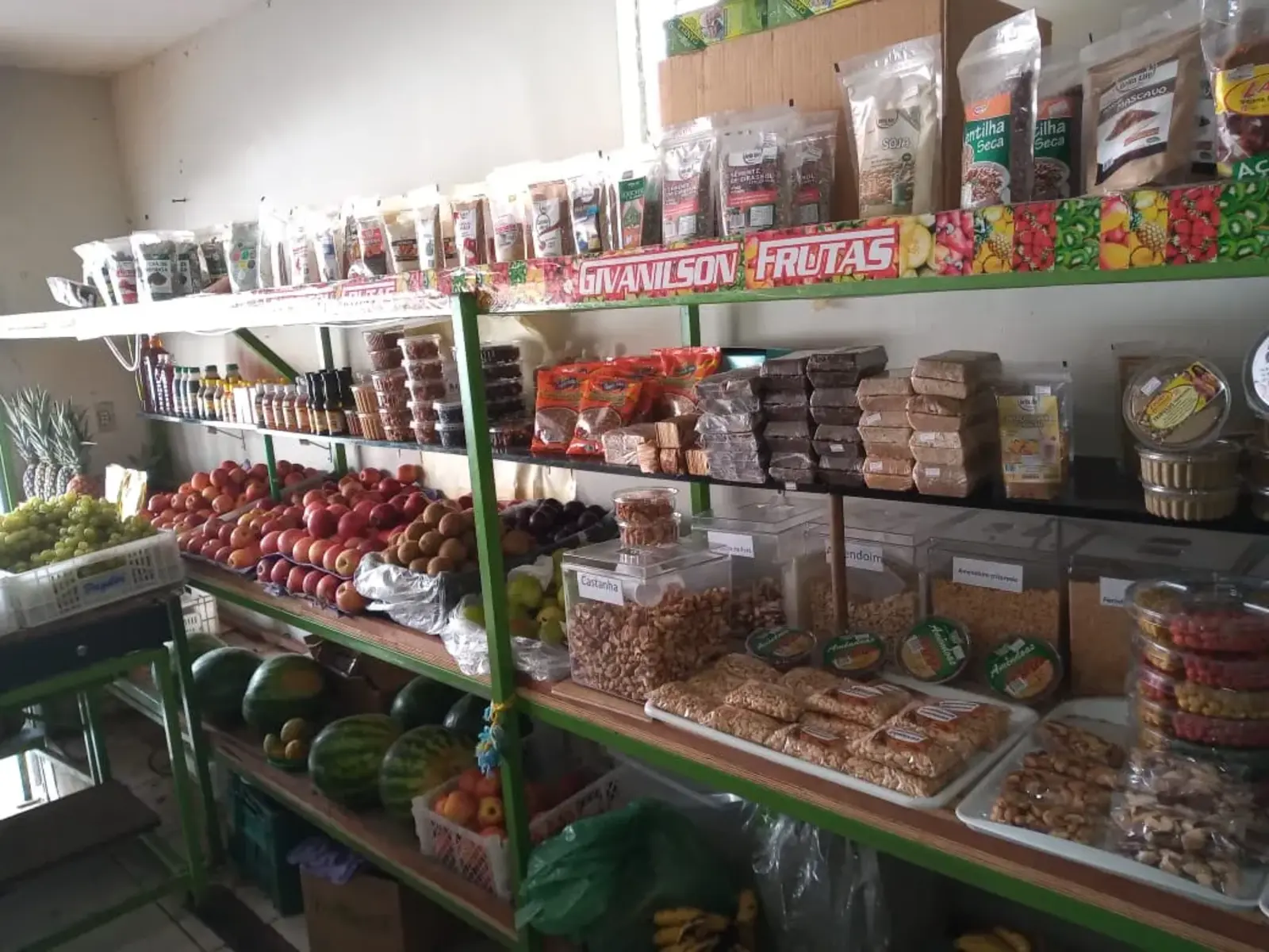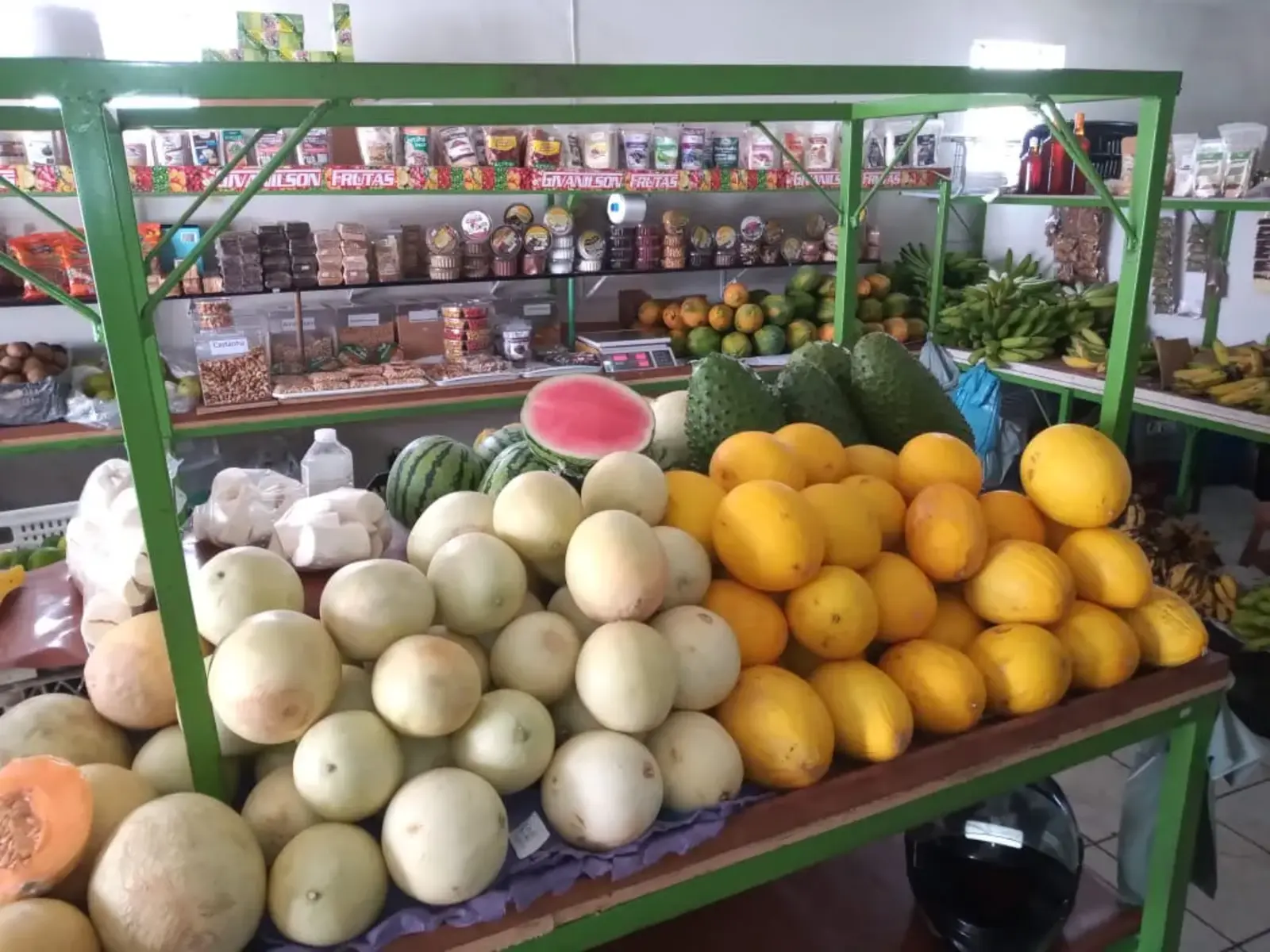 Givanilson Frutas is a local food trade, with a good variety of fruits and vegetables, as well as spices, grains, dried herbs and others natural products. The place is managed by a local family, they accept payment by credit card and also provide service via WhatsApp (phone number on the first picture).