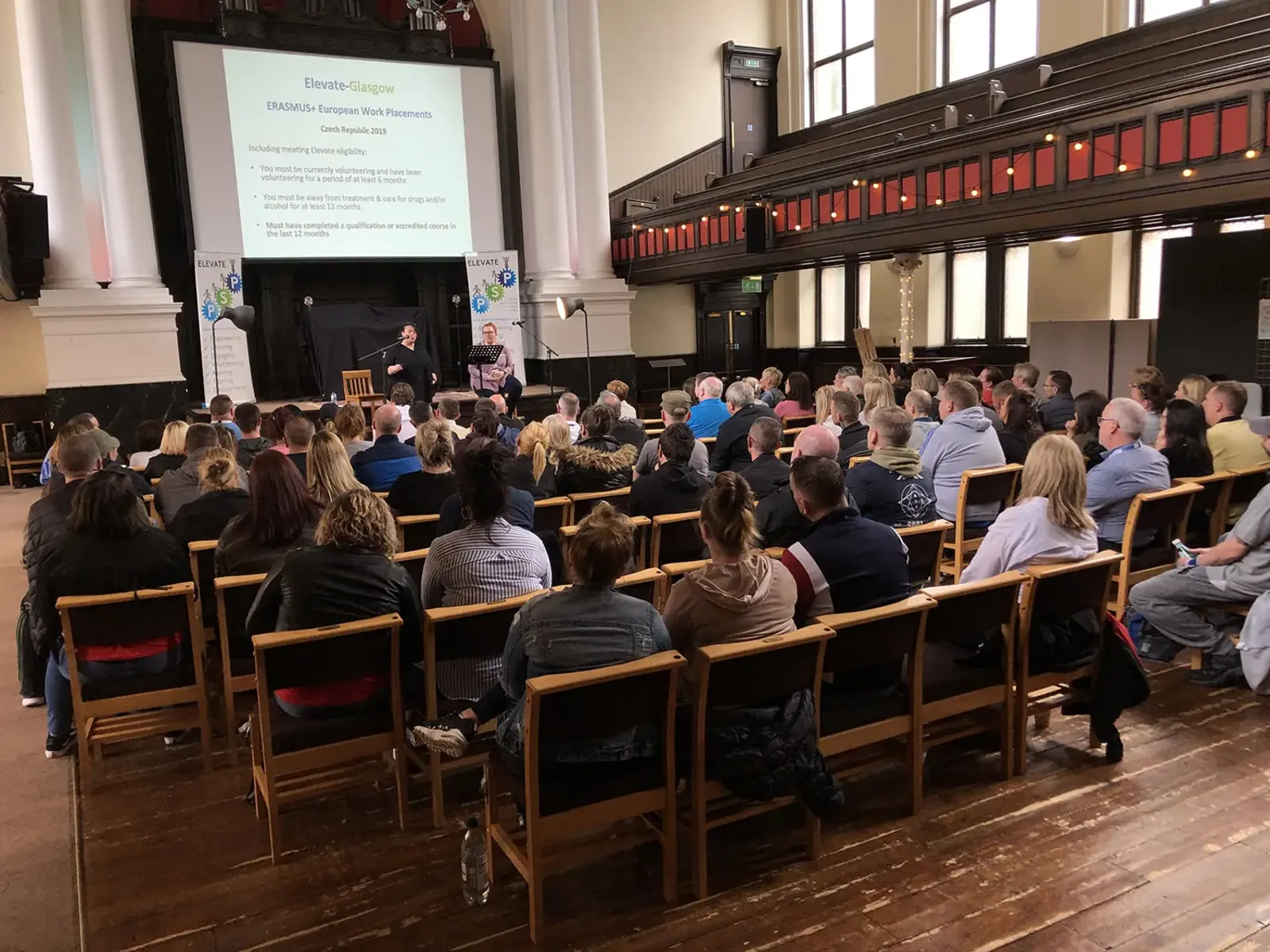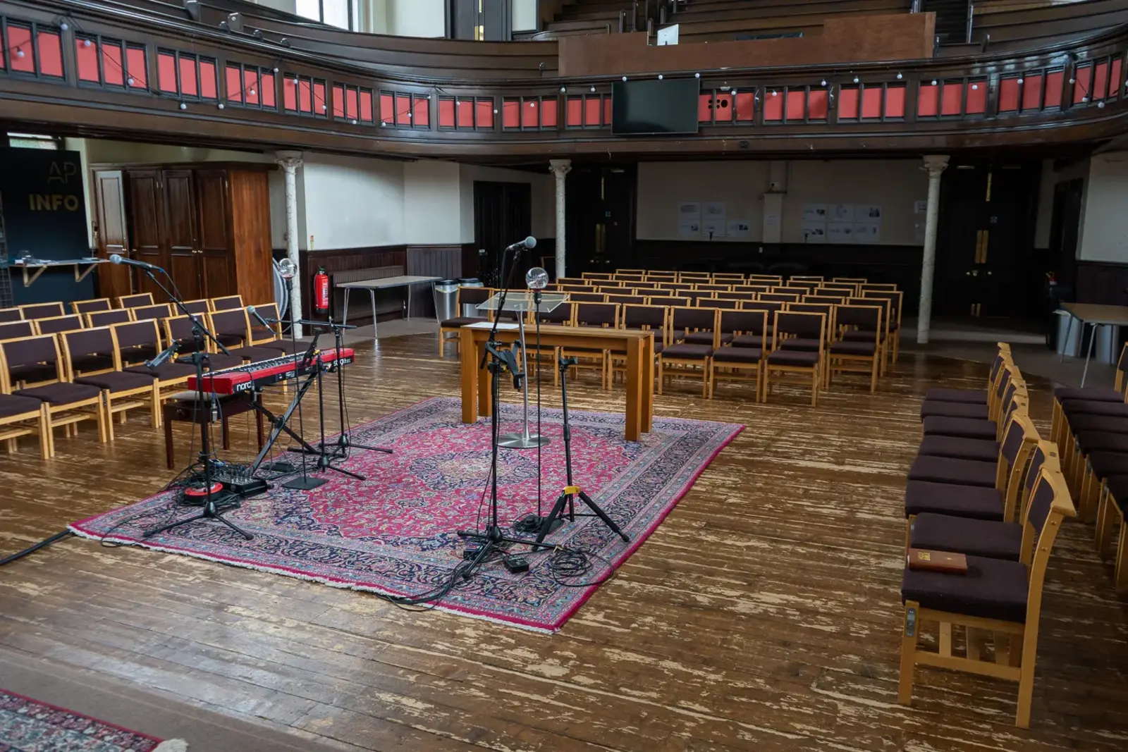 Adelaide's is a well-known Glasgow venue, & more than that it's a community meeting-point. With a high-vaulted ceiling & original features from its build in 1877 (including stained glass windows at the rear of the auditorium), the auditorium can seat 400 people comfortably.