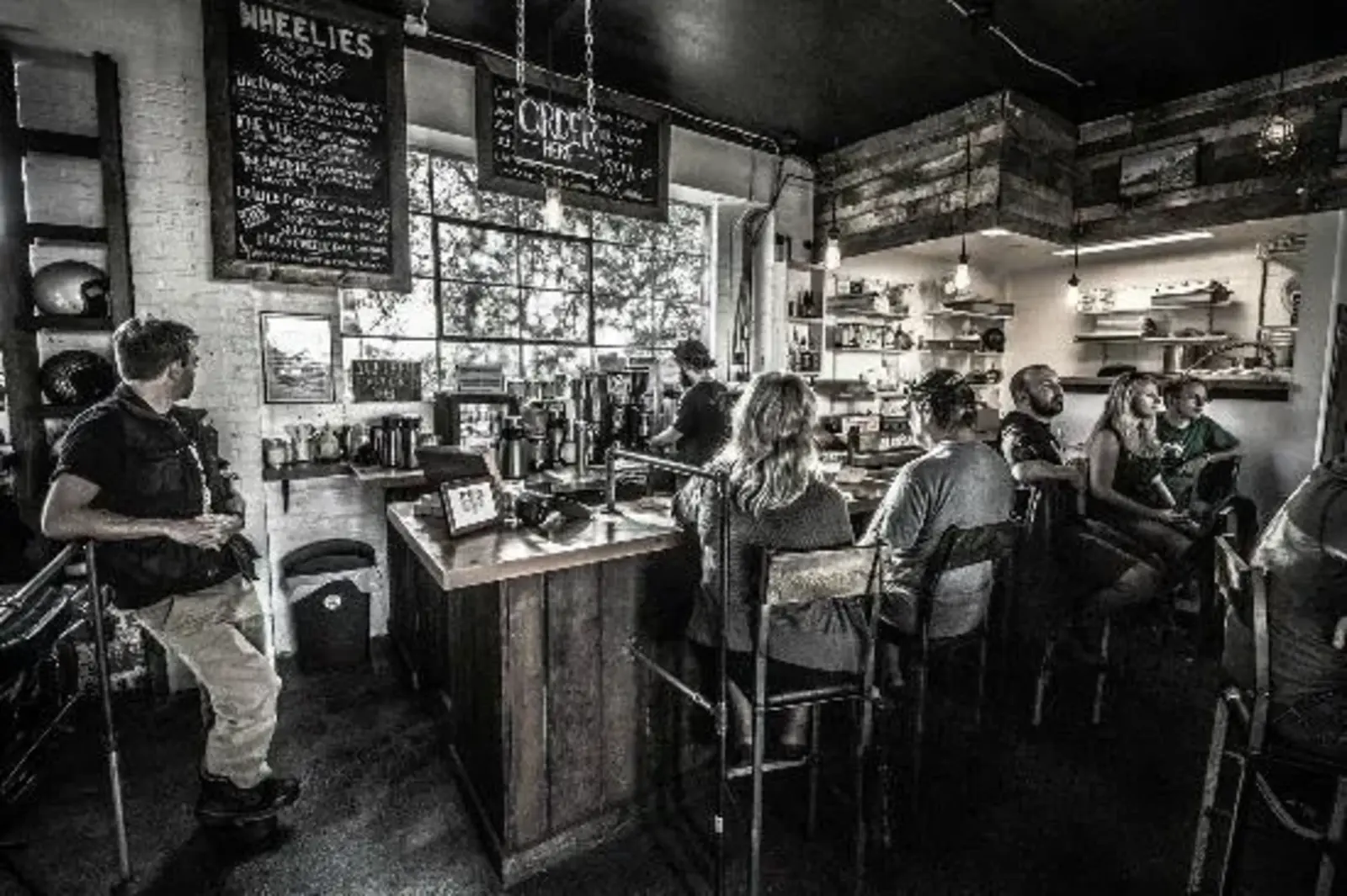 Surprisingly enough, there is a motorcycle repair/sales shop that has a good soup/sandwich Café attached. Staff are friendly and they use recycled items for decoration, tables etc.