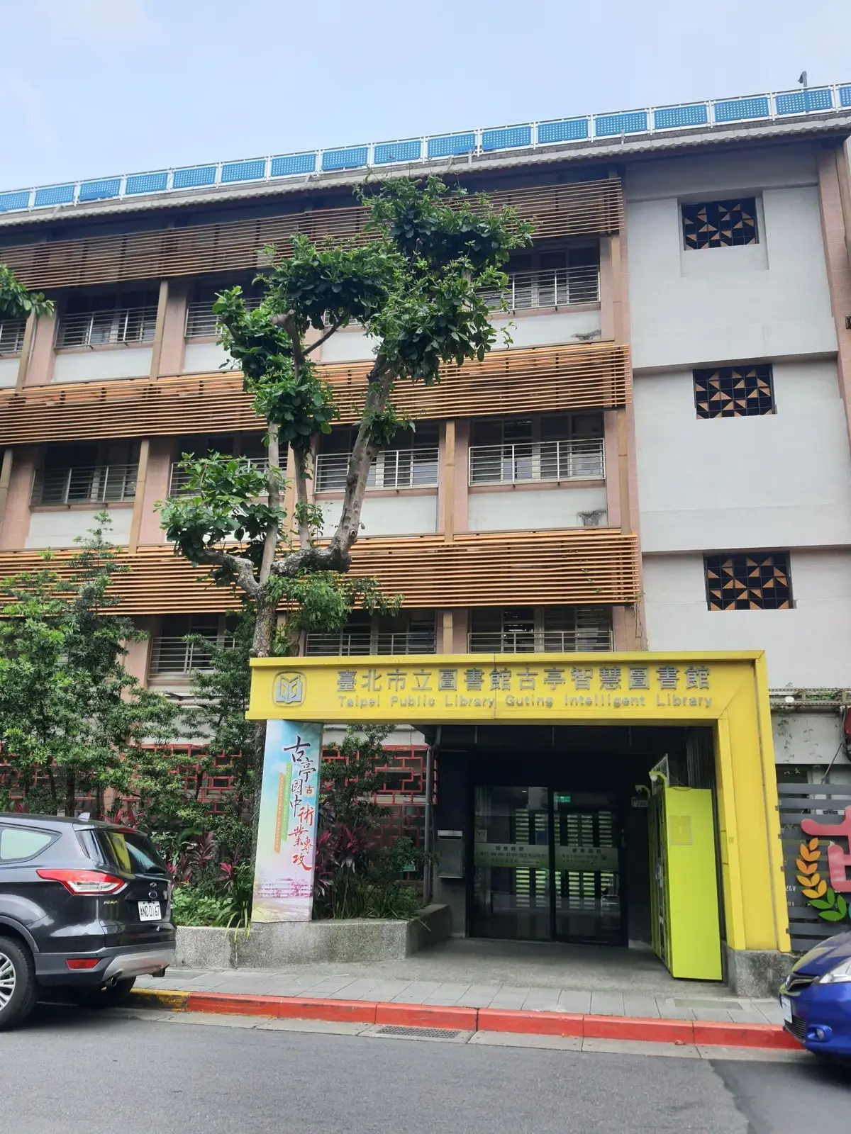 館址位於寧波西街286號處中正區及萬華區交界,門前樹木茂盛綠意漾然,門廳以古亭國中「游藝、勤學、造境、樂活」願景及校園意象美化布置,是座利用校園盈餘教室改建而成的圖書館,不但活化原有校舍空間,更是提供社區民眾小而美,快速、便利汲取知識的最佳去處。