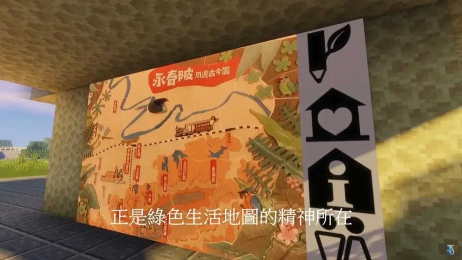 Many people like to play computer games, especially children. Among them, the MINECRAFT computer game has 150 million monthly active users, breaking the record of Tetris and becoming the best-selling computer game in history. Since everyone loves to play, if the game could be combined with the Green Life Map, will more people get to know the Green Life Map from the game? So my children and I tried to use MINECRAFT to design a Green Life Map of Yongchunpi Wetland Ecological Park. (note that in Taiwan, Green Living Map is the usual name for Green Maps).