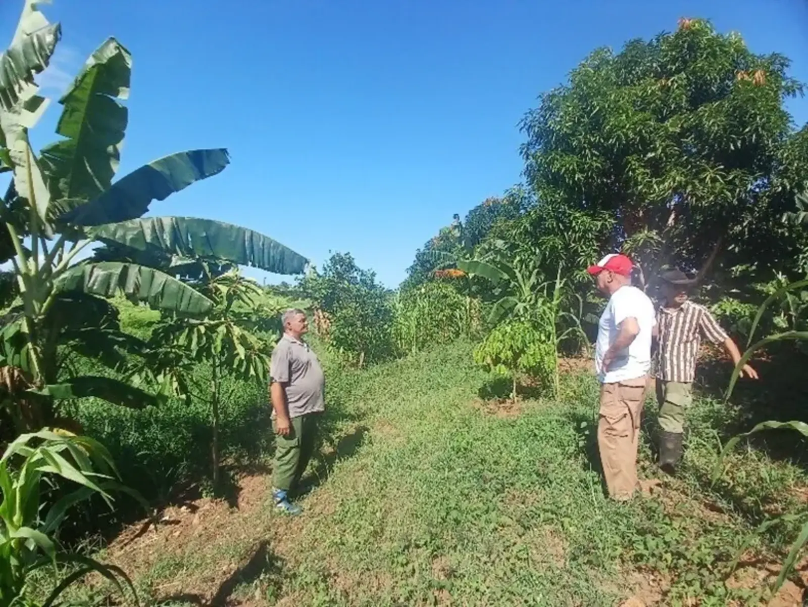 Fiat y burro, café, árbol del pan y mamey de injerto en crecimiento.
